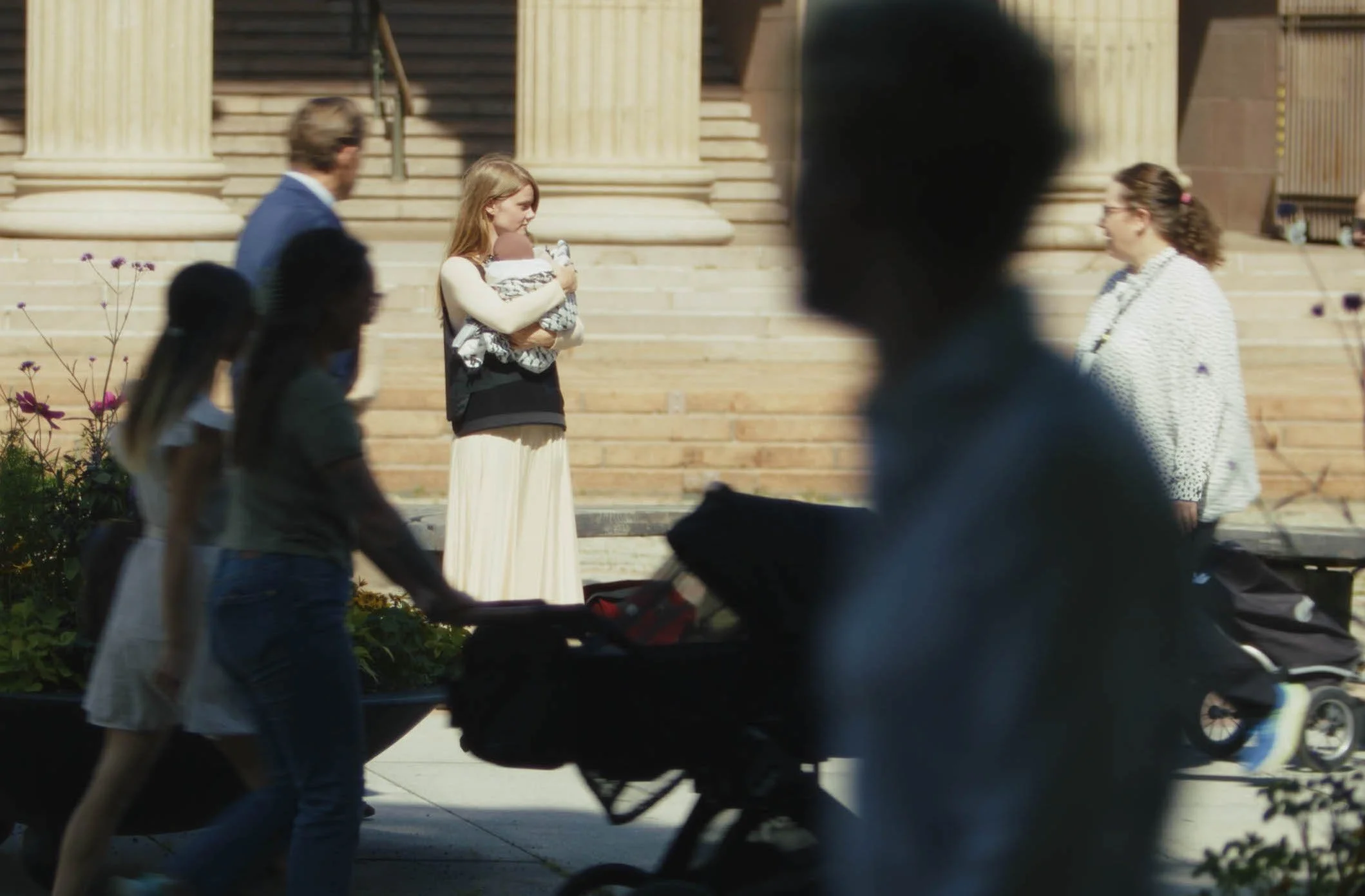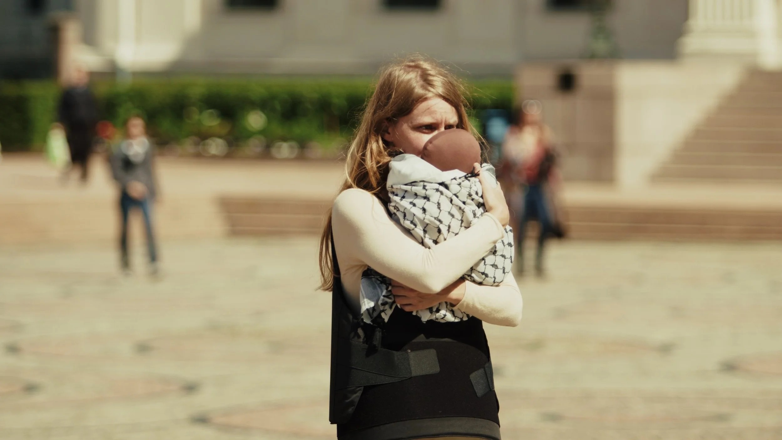 I performancen har Maria med seg et gråtende spedbarn – en dukke – og en skuddsikker vest. Hun stiller seg midt på en åpen plass i hovedstaden, omgitt av folkemengder og høye kontorbygninger. Det tar ikke lang tid før forbipasserende legger merke til henne – alt fra forvirrede blikk til sinte utsagn. Men Maria, som hun selv sier, lar seg ikke stoppe. Og det er tydelig at handlingene hennes setter spor.